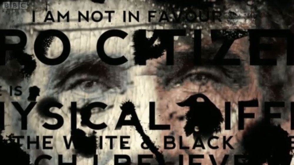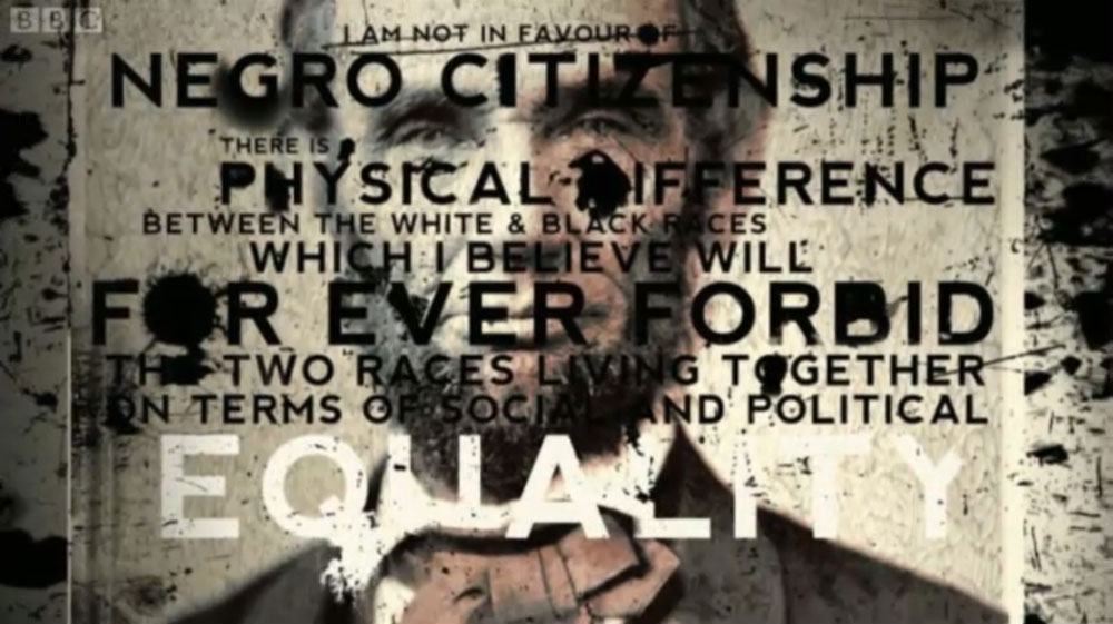 The documentary makers displayed some key quotes in way which I found quite striking. Overlaying the quotes on a familiar image of Lincoln communicates his view on race at the time in a rather condemning way as the words are literally written all over his face.