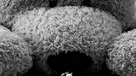 I have this massive bear that my Mum gave me when I was in hospital which I thought, as I have no monsters lying around, would fit the bill when up against a small object like a keyring from China :)