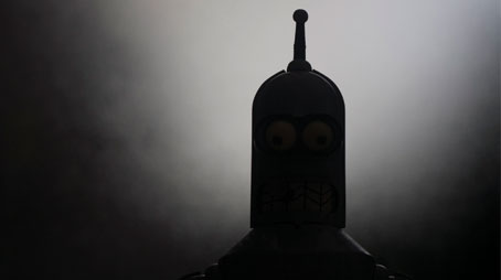 First toy shot of the project. This is a wind-up Bender toy which my brother won years ago (and gave to me quite recently). I took a few shots in full light but they weren't particularly interesting, then I remembered an interview I once saw with Matt Groening talking about his thoughts on character design. His theory was that iconic cartoon characters can be identified in silhouette (Batman, Mickey Mouse etc) and used it as a basis for the Simpsons. This shot is a sort of test of the theory.